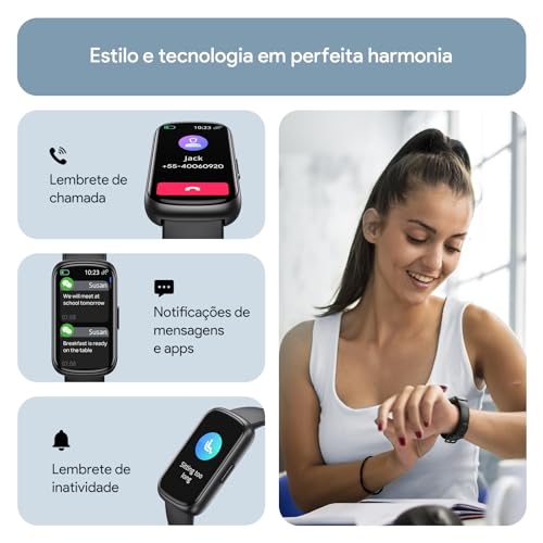 Esteja sempre conectado: receba notificações instantâneas de mensagens, e-mails e redes sociais diretamente no seu pulso. Não perca mais nenhuma atualização importante.