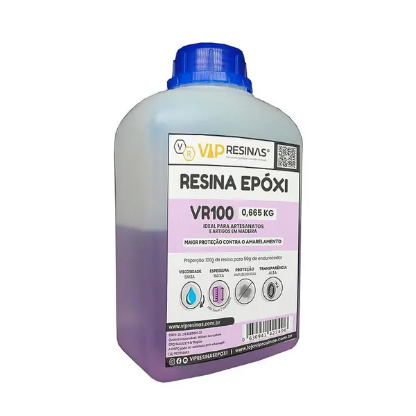 - Conteúdo da EmbalagemResina (componente A) de 665g e endurecedor (componente B) de 335gModeloVR100Peso do Produto1,000kg