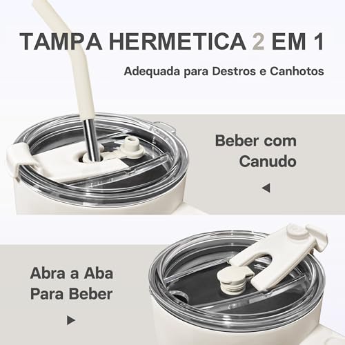 Romantic Crown Copo Térmico com Canudo Tampa e Alça 1,18L, Copos Garrafas Termico para viagem vácuo dupla camada aço inoxidável, Caneca Termica Cafe Água Chá,Presente, Fitness (Creme)