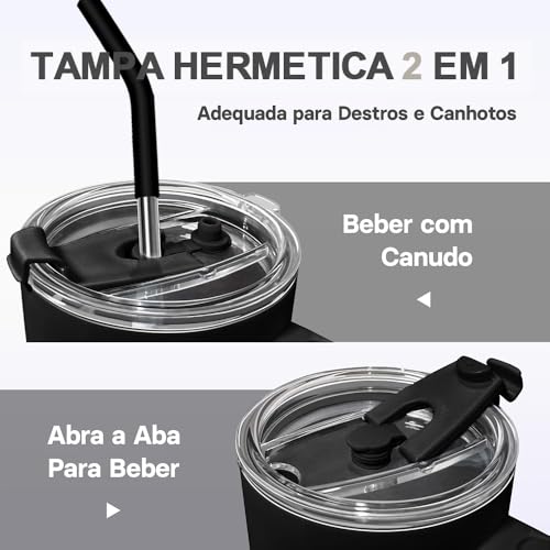 Romantic Crown Copo Térmico com Canudo Tampa e Alça 1,18L, Cops Garrafas Termico para viagem vácuo dupla camada aço inoxidável, Caneca Termica Cafe Água Chá,Presente, Fitness (Preto)