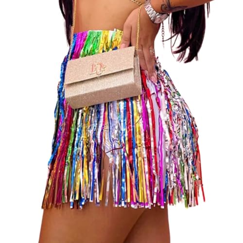 Transforme qualquer ocasião em uma experiência inesquecível com a Saia Metalizada Colorida com Franjas. Desenvolvida em material leve, resistente e altamente brilhante, ela se destaca pelas franjas longas e coloridas, que criam um efeito visual incrível de movimento a cada passo. É a escolha perfeita para quem busca um visual marcante, alegre e cheio de personalidade.