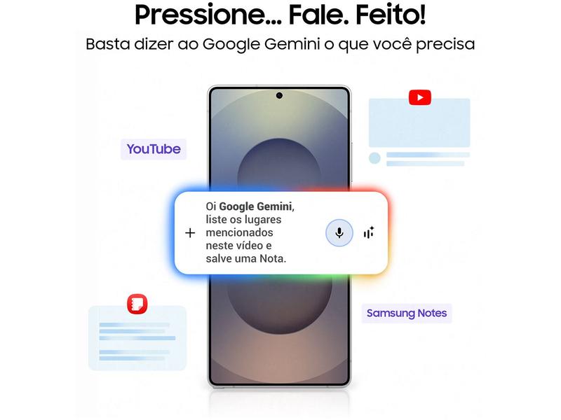 Vem com a nova geração do Galaxy AI, que oferece uma experiência personalizada e inteligente. O Cadeado Galaxy também está presente, garantindo mais segurança para o seu smartphone.