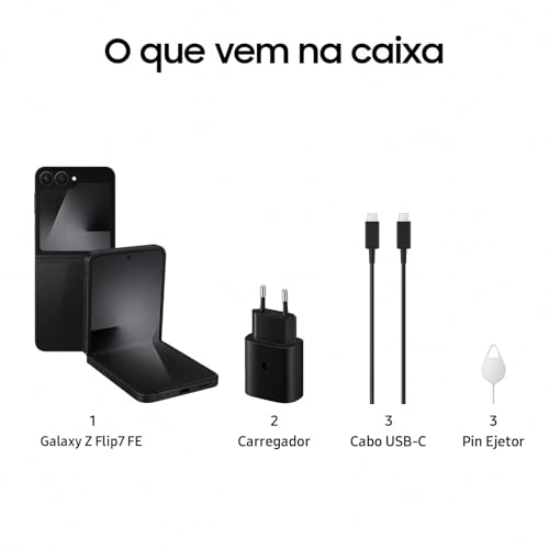 Samsung Galaxy Z Flip7 FE 5G, 128GB 8GB RAM Tela 6,7", Galaxy AI - Preto