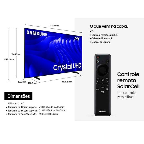Samsung Smart Super Big TV 98 Polegadas Crystal UHD 4K 98DU9000 2024