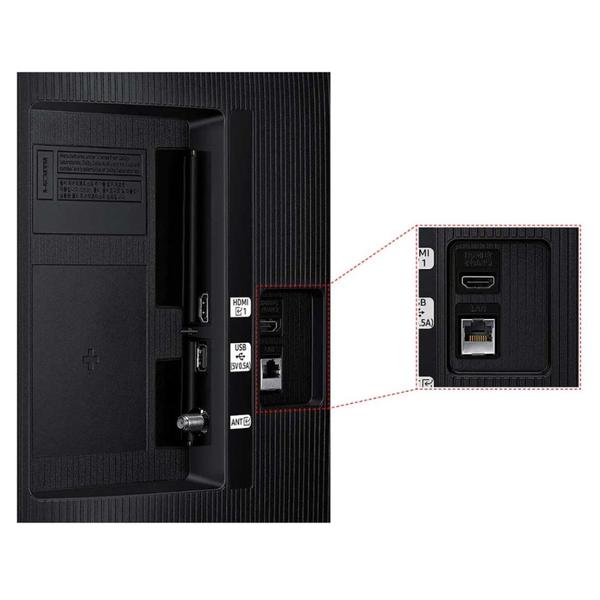 - HDMI: 2 l HDMI Audio Return Channel: eARC l Anynet+ (HDMI-CEC): Sim l 1 USB-A l Ethernet (LAN): 1 l Entrada de RF (terrestre/entrada de cabo): 1 / 1 (Uso Normal para o Terrestre) / 0