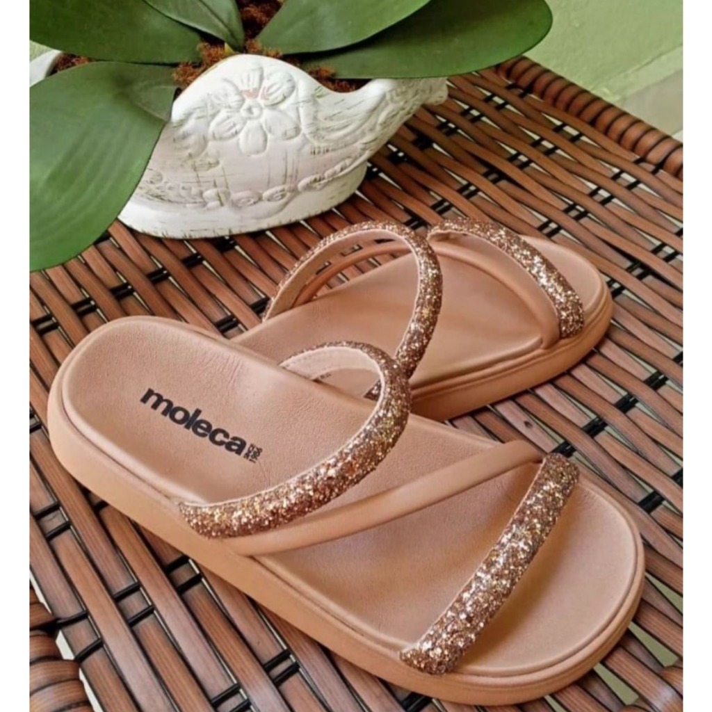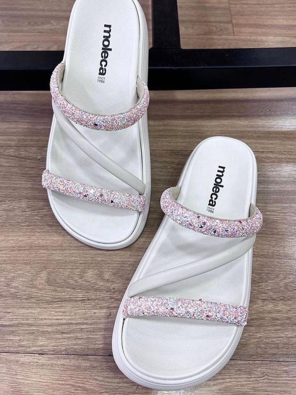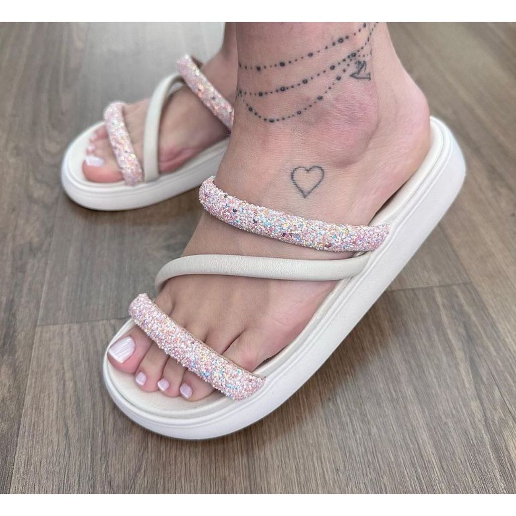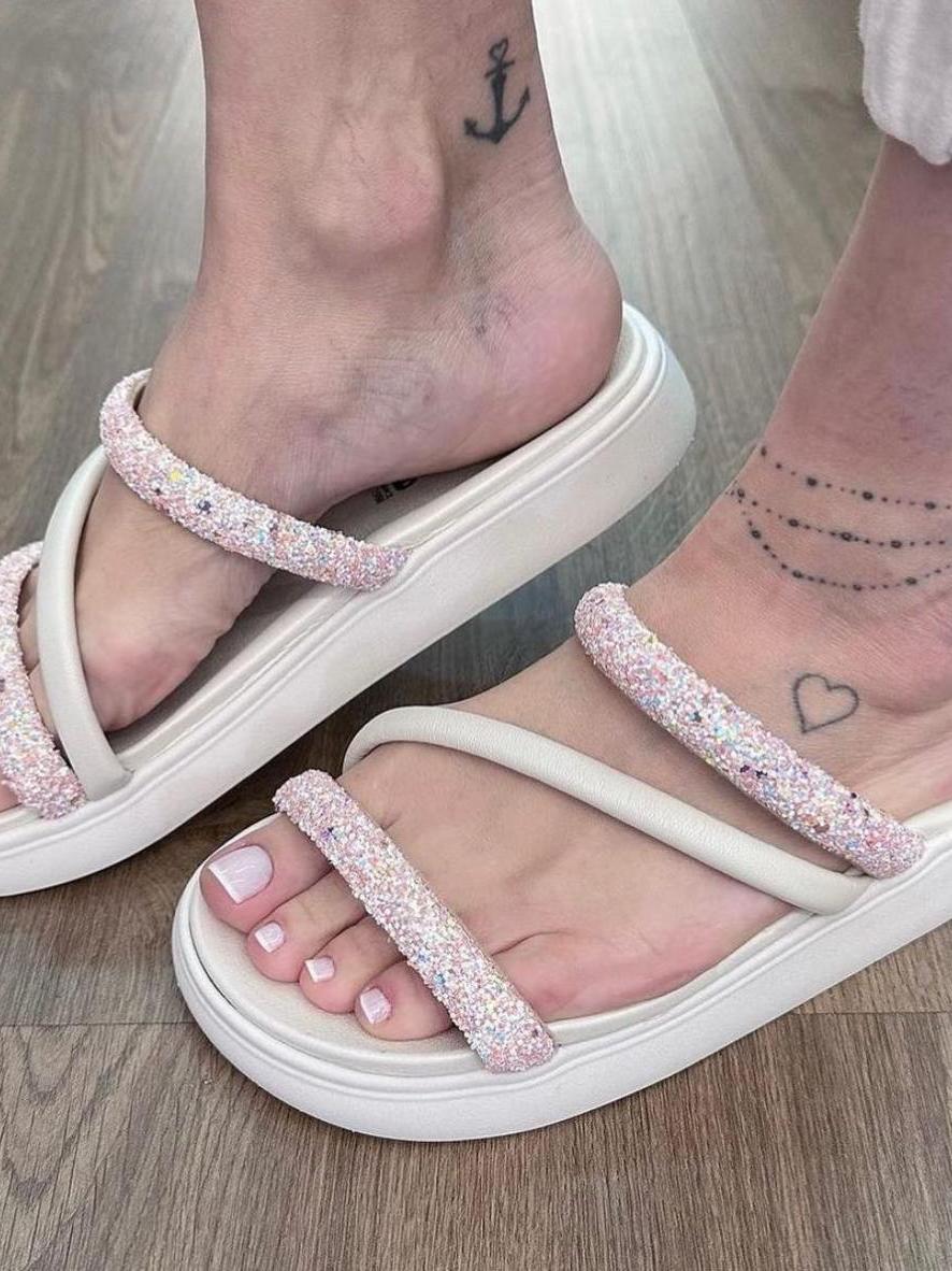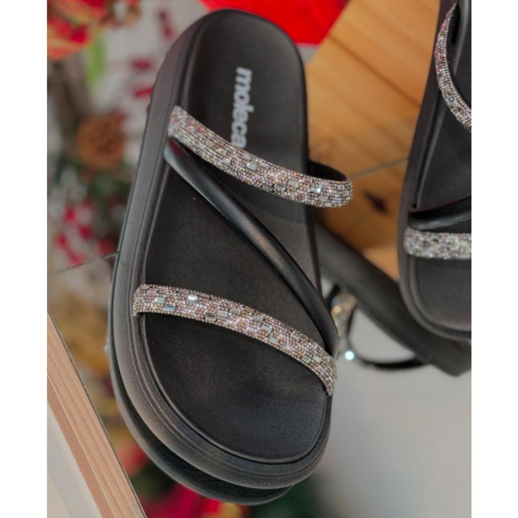 Sandalia Papete Moleca Feminina Tiras Strass Flatform Macia Original