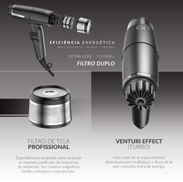 2 Bicos Profissionais, 1 Difusor Profundo, 3 Filtros Reutilizaveis e Lavaveis