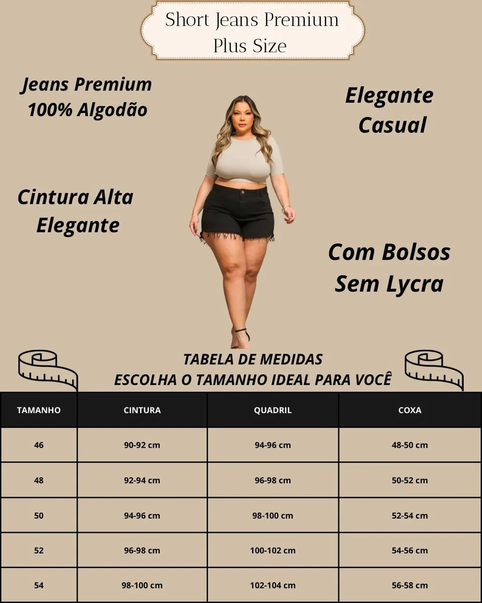 - SHORT PLUS SIZE CINTURA ALTA ENRUGADO
