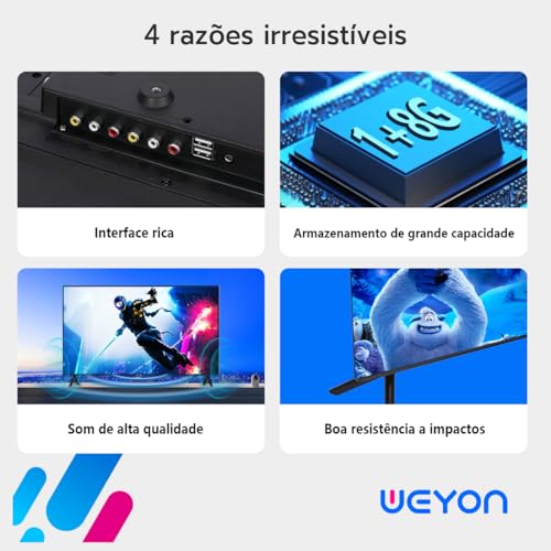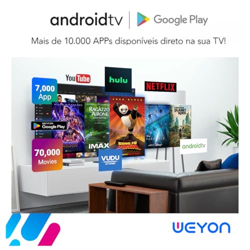 Smart TV WEYON com Android 14: Desfrute de centenas de aplicativos com o melhor desempenho, acessando seu entretenimento de forma rápida, fácil e inteligente.