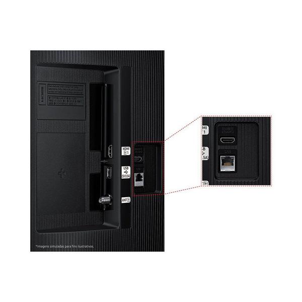 - HDMI: 2 l HDMI Audio Return Channel: eARC l Anynet+ (HDMI-CEC): Sim l 1 USB-A l Ethernet (LAN): 1 l Entrada de RF (terrestre/entrada de cabo): 1 / 1 (Uso Normal para o Terrestre) / 0