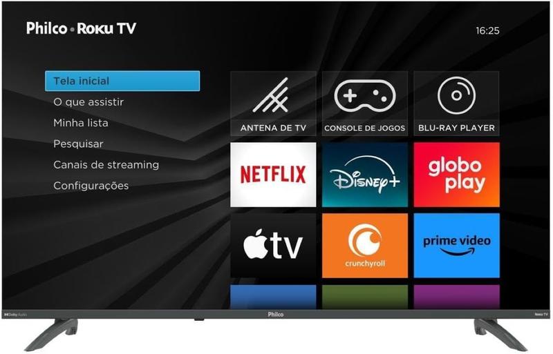 A Smart TV Philco 43'' PTV43VA4REGB combina tecnologia avançada e praticidade para transformar sua experiência de entretenimento. Com o sistema Roku TV, você tem acesso rápido e intuitivo a plataformas como Netflix, YouTube, Prime Video, Disney+ e muito mais.