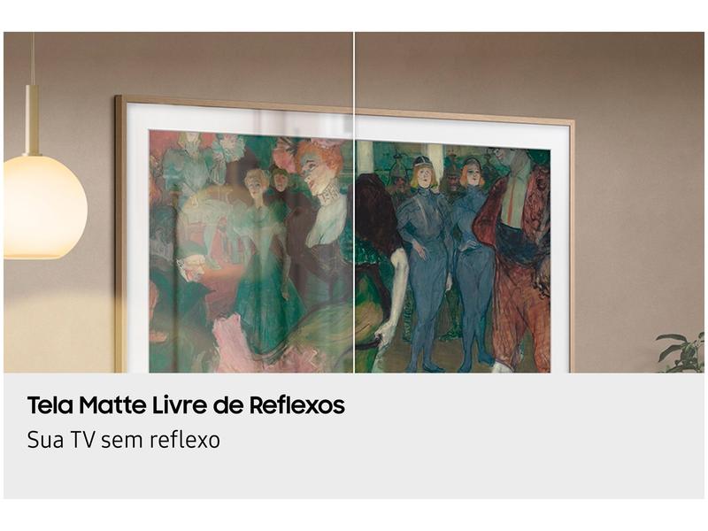 Com resolução 4K (3840x2160), ela oferece imagens de alta definição, com cores vibrantes e detalhes nítidos. O grande diferencial é sua Tela Matte livre de reflexos, que proporciona uma visualização imersiva e sem distrações, mesmo em ambientes com muita luminosidade, e realça a textura das obras de arte exibidas no Modo Arte.