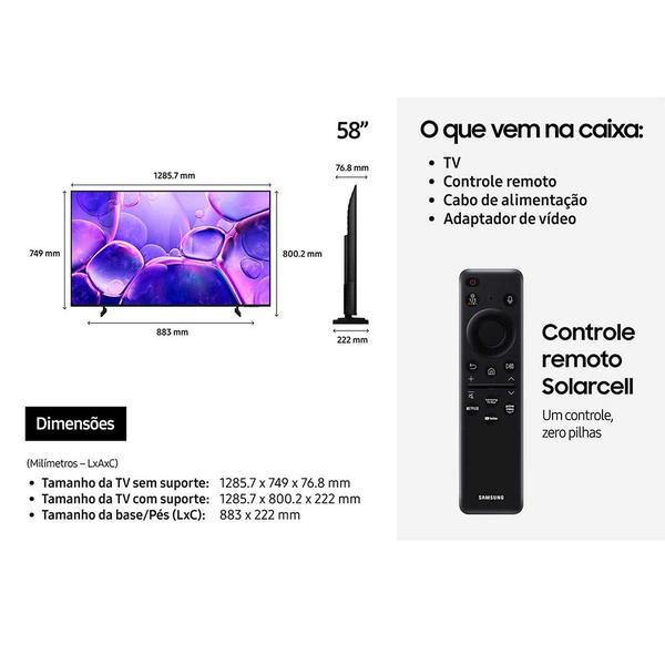 Smart TV 58 Polegadas Samsung U8500F Crystal UHD 4K 2025 Xbox Cloud Gaming Canais Gratuitos 7 Anos de Atualização AI Energy Mode Alexa integrada