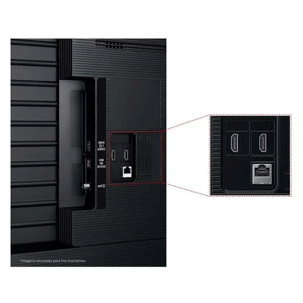 - Ano de Lançamento2025Aplicativos Pré-instaladosSamsung TV Plus e Daily+Assistente VirtualAlexa integradaCertificado Homologado pela Anatel Número22879-23-02217ConectividadeWi-Fi 5, Bluetooth 5.3Conexões1 x USB-A/ HDMI 3/ BT Sim(5.3)/ WI-FI Sim (Wi-Fi 5)Co