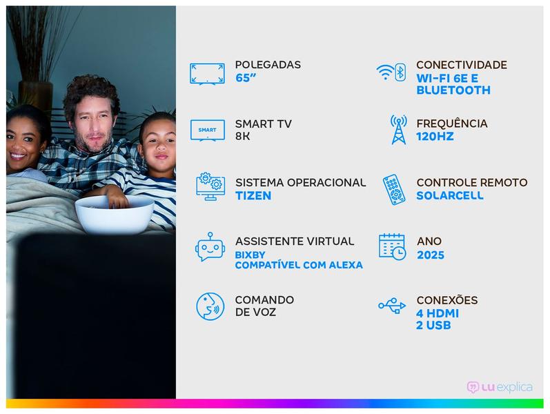 Equipada com o sistema operacional Tizen, ela oferece 7 anos de atualização, assegurando a longevidade do seu entretenimento.