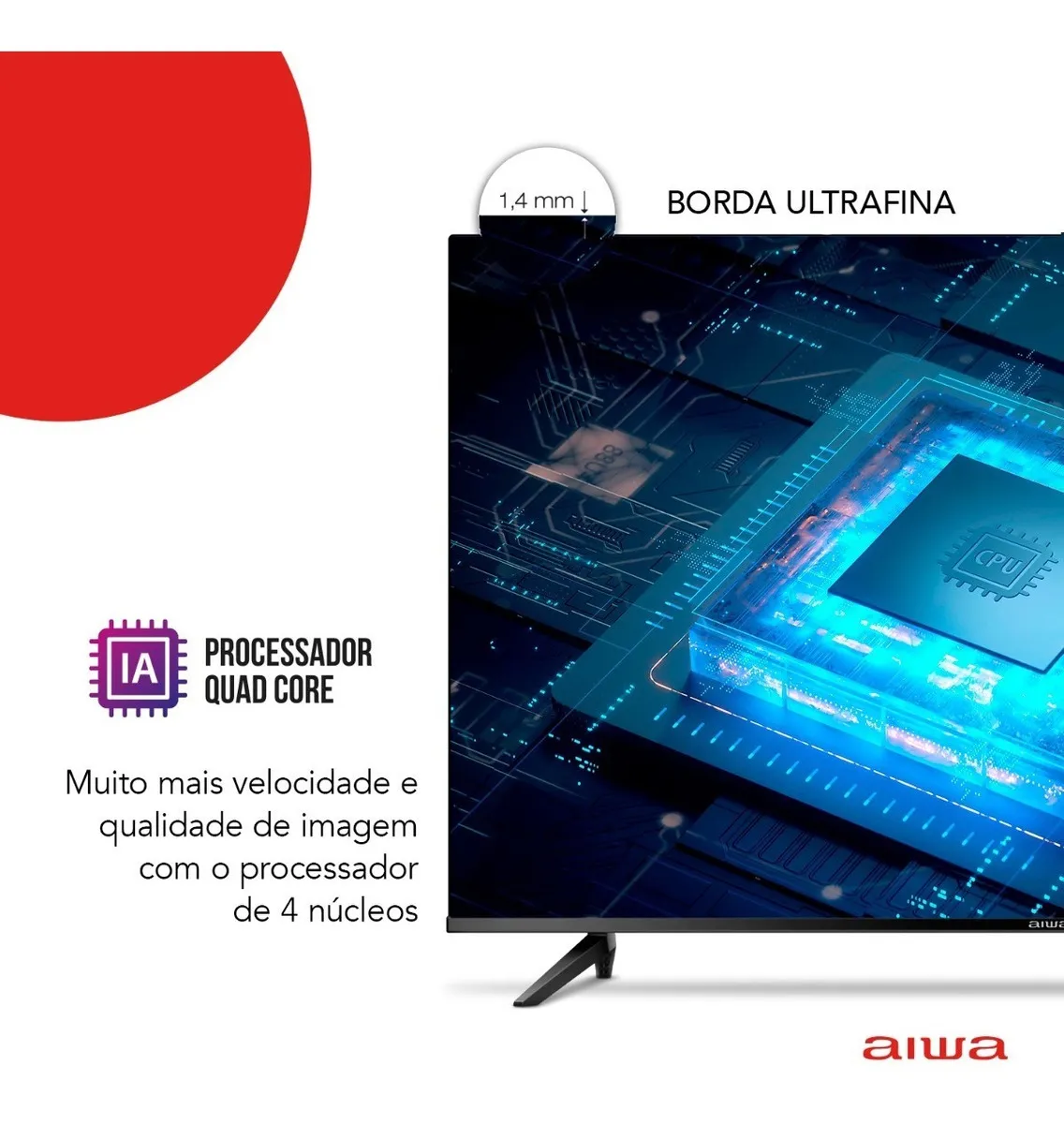 BORDA ULTRAFINA: A Smart TV Aiwa tem borda ultrafina de 1,4mm e proporciona, além de design sofisticado e elegante, uma imersão visual impressionante.