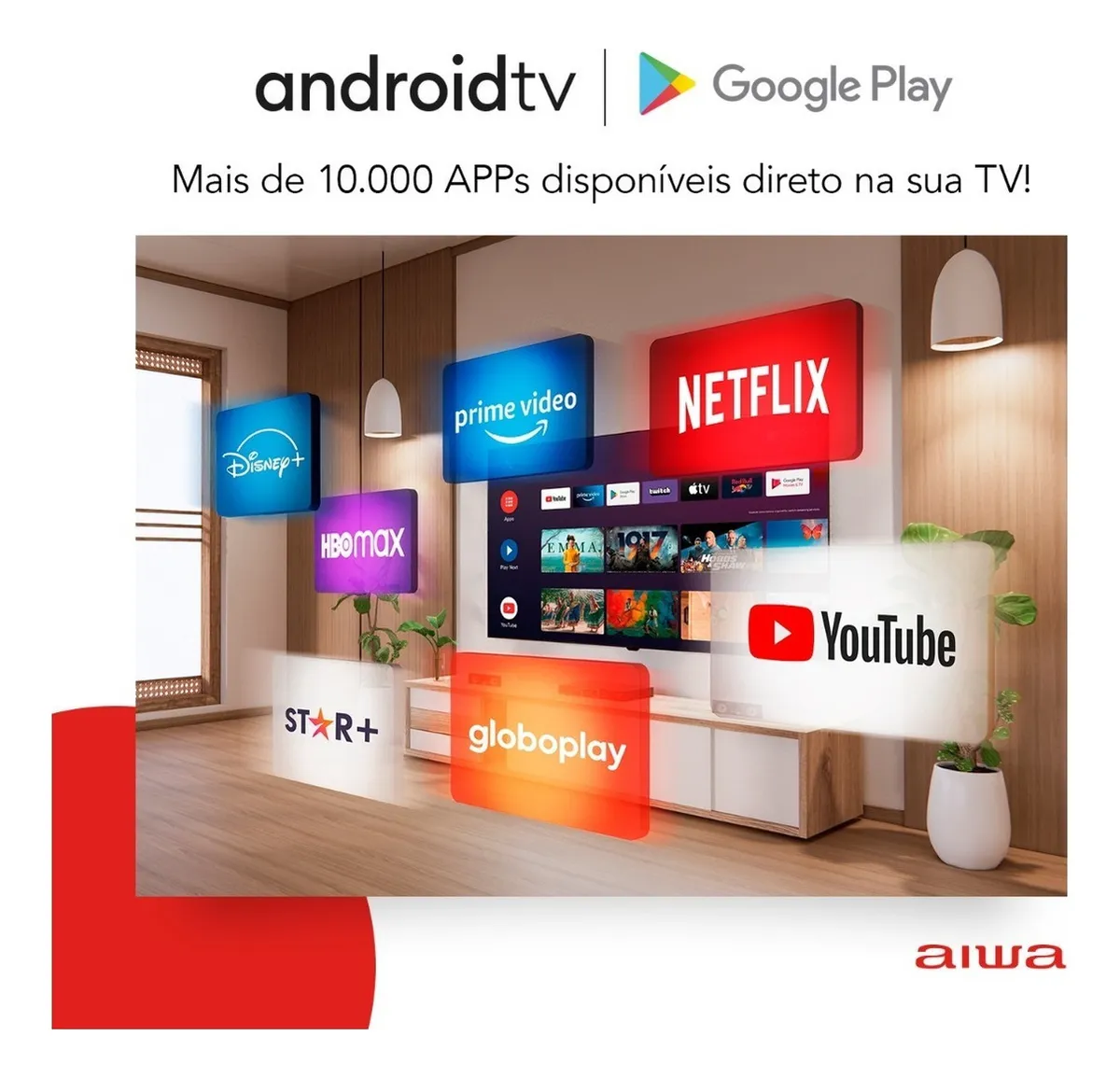 ANDROID TV: Com a AndroidTV, você tem acesso aos principais Serviços de Streaming para assistir seus filmes e séries favoritos. Você também pode baixar diversos jogos e outros conteúdos: são mais de 10.000 aplicativos disponíveis direto na sua TV!