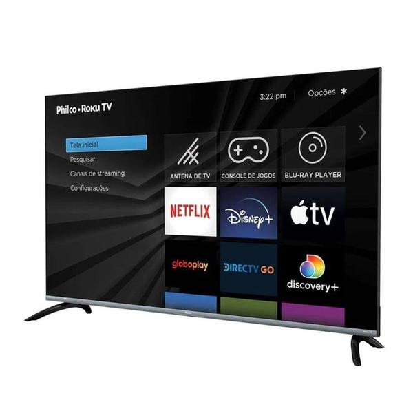 Características Principais do Produto:Altura: 71,5 cmCertificado Anatel: 01576-22-11928Comprimento: 9,0 cmCor: PretoLargura: 110,5 cmResolução da Tela: 4K UHDSmart TVTamanho da Tela: 50"Interface Smart:Sistema Operacional: Roku TVProcessador: Quad CoreConversor Digital Integrado: SimAlimentação: AC 100-240V ~ 50/60HzPotência: 75,8 WConsumo Médio: 9,29 kW/hCor: Space GreyFuncionalidades Smart:Conexão com Assistentes Virtuais: Compatível com Alexa e Google AssistenteEspelhamento de Tela: MidiaCastAplicativos Pré-Instalados: Netflix, YouTube, Prime Video, Disney+Loja de AplicativosWi-Fi IntegradoQualidade de Imagem e Áudio:Tamanho da Tela: 50"Dolby AudioSurround SoundCanais: 2.0Equalização de SomPotência do Alto-Falante: 12W RMS x 2Conexões e Portas:AV4 entradas - HDMI2 entradas - USB1 entrada - P21 entrada - Ethernet (LAN)1 - Saída Digital ÓpticaDimensões do produto:Altura do produto: 71,5 cmLargura do produto: 110,5 cmComprimento do produto: 9,0 cmPeso do produto: 8,755 kgDimensões de envio do produto:Altura com embalagem: 70,0 cmLargura com embalagem: 118,0 cmComprimento com embalagem: 14,0 cmPeso com embalagem: 11,295 kgConteúdo da Embalagem:Controle remotoCabo de forçaManual de instruçõesBase (Pés)Garantia: 1 Ano (Ofertada pelo Fornecedor)Fornecedor: Philco