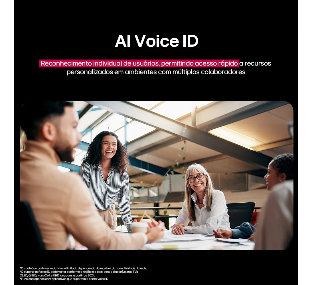 A Smart TV também se destaca pela sua versatilidade, possuindo várias portas HDMI e USB, além de um design elegante em preto que se adapta a qualquer ambiente. O sistema de assistente virtual LG ThinQ AI torna a navegação ainda mais inteligente, permitindo que você controle a TV com comandos de voz.