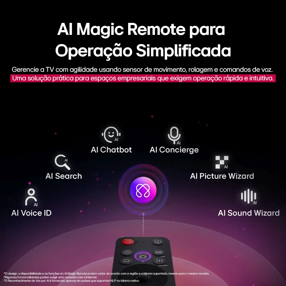 Smart TV Profissional 4K 55" LG UHD 55AU801 Processador α7 AI Ger8 Super Upscaling Google Cast Alexa Integrado Controle AI Smart Magic WebOS 25