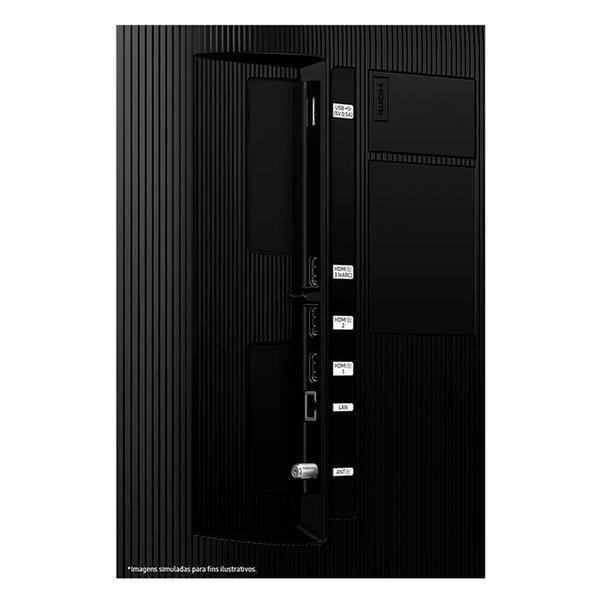 - 3 entradas HDMI com eARC, 1 porta USB, entrada LAN, entrada RF