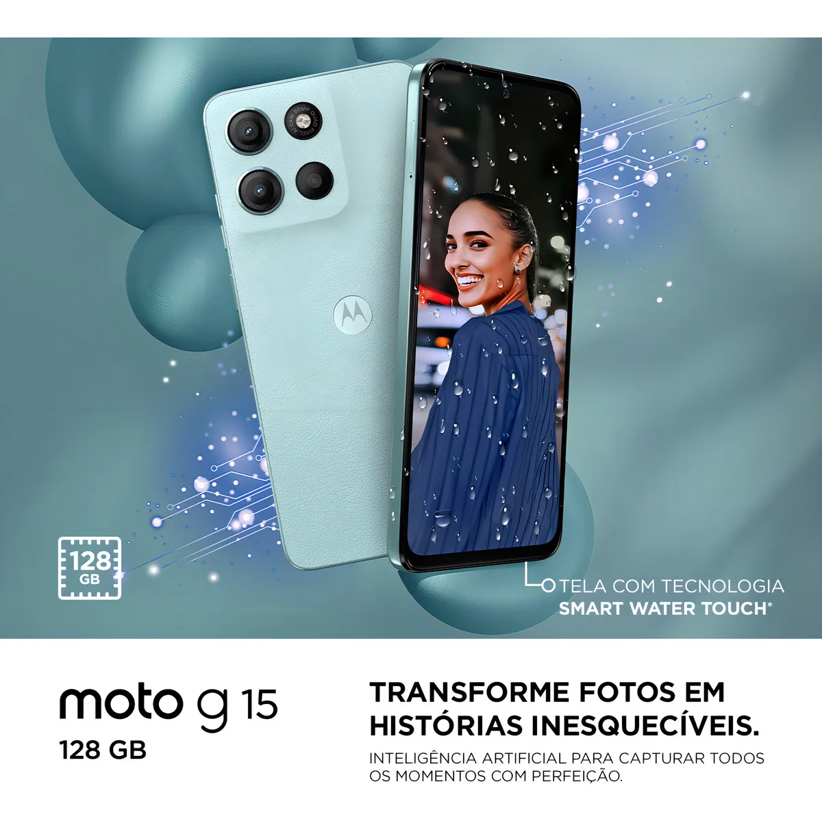Smartphone Motorola Moto G15 - 128gb 12gb (4gb Ram+8gb Ram Boost) E Camera 50mp Com Ai E Night Vision Bateria De 5200 Mah Tela Fhd+ 6.7 Com Superbrilho Nfc Azul Claro