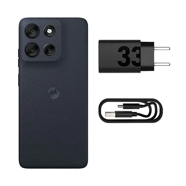 - 1 Smartphone, Manual, 1 Cabo USB-A/USB-C, 1 Carregador TurboPower 33W e 1 Ferramenta de Remoção do Chip