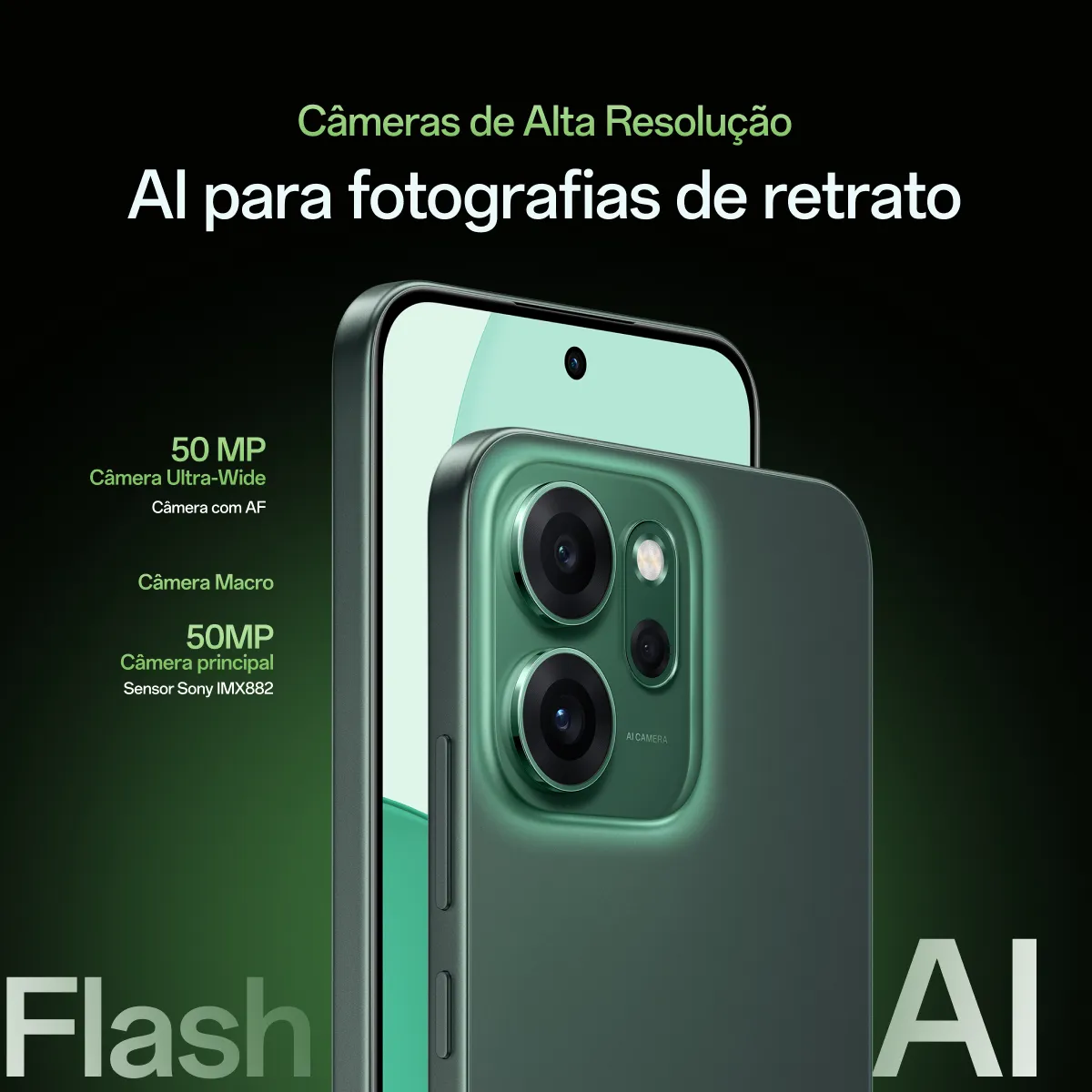 A tela AMOLED de 6.57 polegadas, com uma resolução de 2372 x 1080 pixels, proporciona cores vibrantes e imagens nítidas, tornando a experiência de visualização excepcional. Para os amantes da fotografia, o Reno 14 F conta com câmeras traseiras de 50 Mpx, permitindo capturar imagens impressionantes, enquanto a câmera frontal de 32 Mpx garante selfies de alta qualidade.