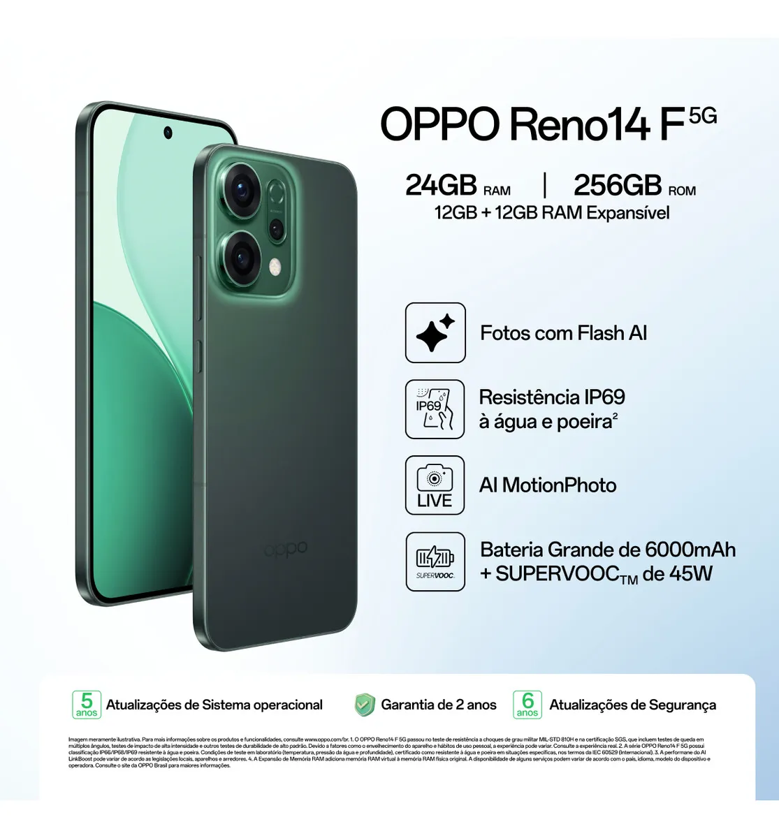 Smartphone OPPO Reno 14F 256GB 12GB RAM 5G IP69 Verde