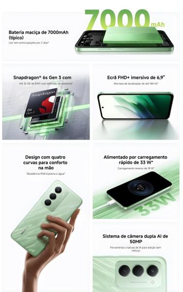 ✅ Bateria de 7.000 mAh com carregamento rápido de 33 W — fiel companhia para o dia todo