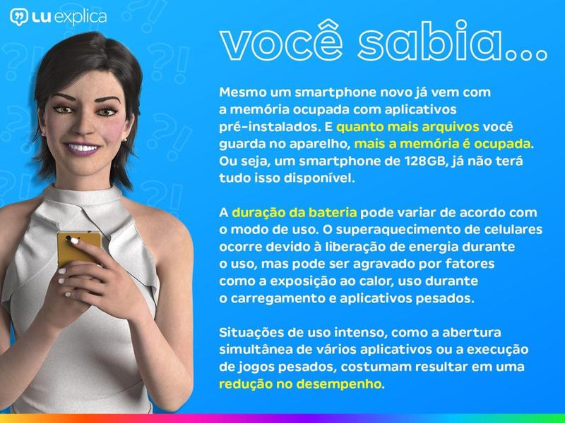 - A memória total pode variar conforme aplicativos pré-instalados e sistema operacional