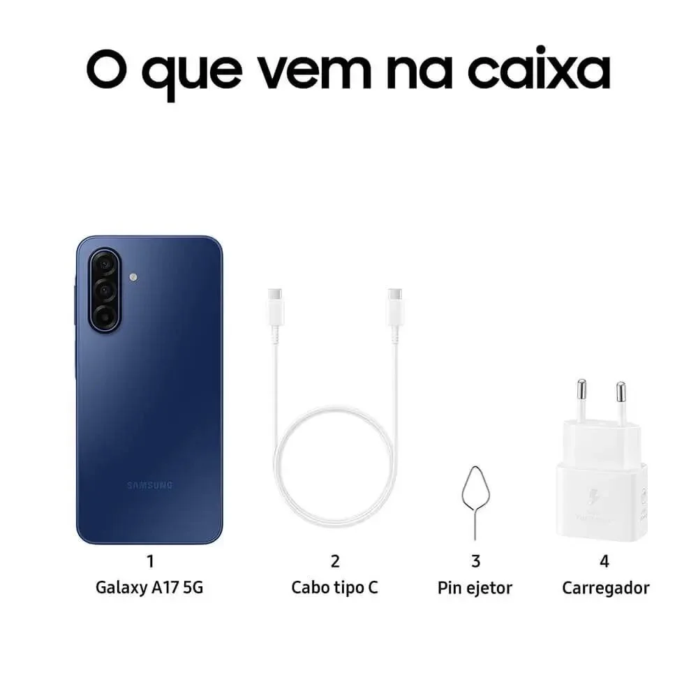 Smartphone Samsung Galaxy A17 5g 256gb - Azul, Ram 8GB, Tela 6.7", Câmera Tripla 50mp + Selfie 13mp