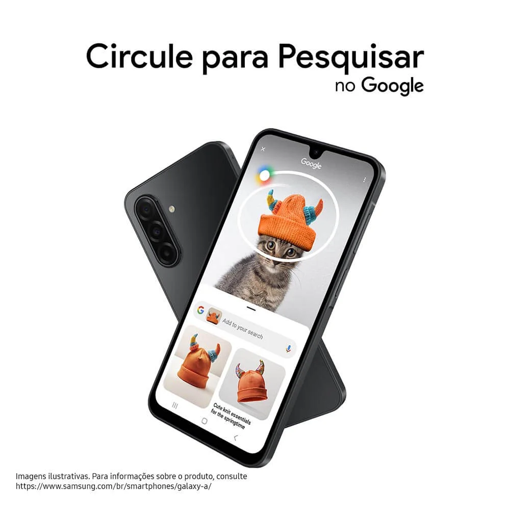 Descubra uma nova forma de interagir com o seu smartphone. O Galaxy A17 5G chega com a Inteligência Artificial do Google integrada, transformando sua experiência diária. Com o assistente Gemini, basta um toque no botão lateral para obter ajuda inteligente e natural. Utilize o "Circule para Pesquisar" para encontrar informações sobre qualquer item na sua tela de forma intuitiva, desde objetos em fotos até trechos de músicas.