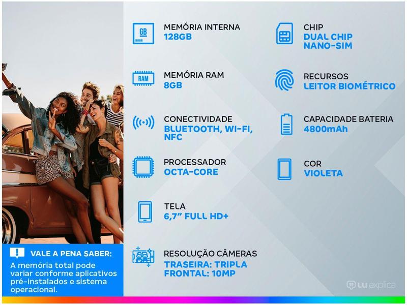 - Armazenamento Interno128GBCapacidade da Bateria4800mAhCertificado Homologado pela Anatel Número167592000953Conectividade5GCorVioletaLinhaGalaxy SMarcaSamsungMemória RAM8GBModeloGalaxy S21+ProcessadorOcta-CoreQuantidade de ChipsDual ChipRecursos de Foto e