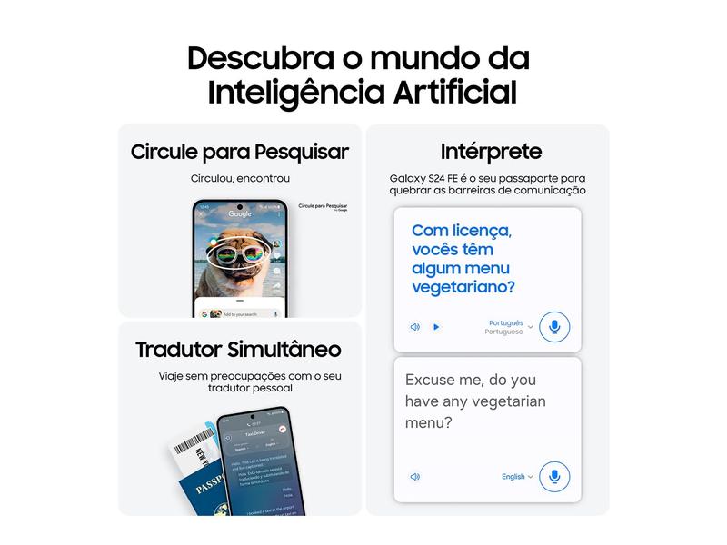 Tem garantia de 7 atualizações de sistema operacional e 7 anos de atualizações de segurança. Ele também conta com recursos exclusivos da Samsung, como o Galaxy AI (Inteligência Artificial), o Cadeado Galaxy e o Knox, que protegem seus dados e privacidade.