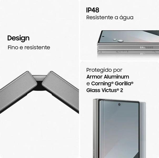 p { font-size: 16px; line-height: 1.5; text-align: center; } SMARTPHONE SAMSUNG GALAXY Z FOLD6 Principais características Referência SM-F956BDBKZTO Memória Interna total compartilhada 512GB Suporte a Cartão de Memória Não Memória RAM 12GB Processador Qualcomm Snapdragon 8 Gen 3 for Galaxy Velocidade do Processador Octa-Core de até 3.36GHz Capacidade da Bateria (mAh) 4400mAh Tipo de Bateria Ions de Lítio Compatível com Carregamento Rápido (mAh) Sim (45W) Carregamento Sem Fio Sim Câmera Traseira 50MP (Wide) + 12MP (Ultra Wide) + 10MP (Tele) Abertura F1.8 + F2.2 + F2.4 Zoom Zoom Digital até 30x e Óptico 3x Estabilizador Óptico de Imagem (OIS) Sim Sensor Phase Detection (PDAF) Sim Foco Automático (AF) Sim Flash Flash-LED Câmera Frontal 10MP Abertura F2.2 Flash Frontal Sim, na tela Resolução de reprodução UHD 8K (7680 x 4320) | @60fps Resolução de gravação UHD 8K (7680 x 4320) | @24fps Tamanho da tela 7.6" | 192.1mm Tecnologia Dynamic AMOLED 2X Taxa de atualização 120Hz itens inclusos Aparelho celular, carregador, cabo USB, Extrator de Chip e manual do usuário Conexão 5G