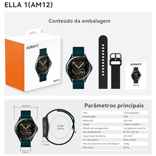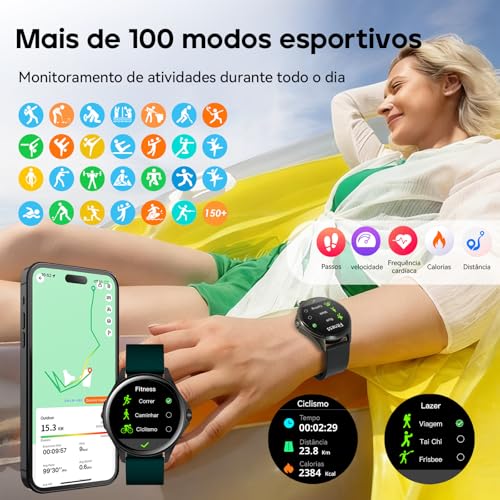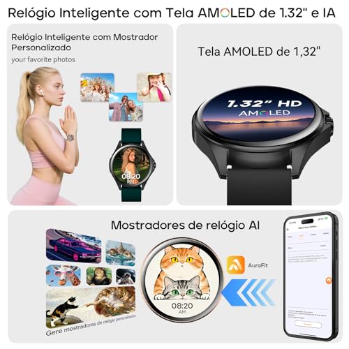 Smartwatch Feminino Relógio Inteligente com IA Chatgpt, 1.32’’ AMOLED,iOS Android, IP68 Água, Frequência Cardíaca, Monitor de Sono, 100 Esportes, 2 Pulseiras, Preto