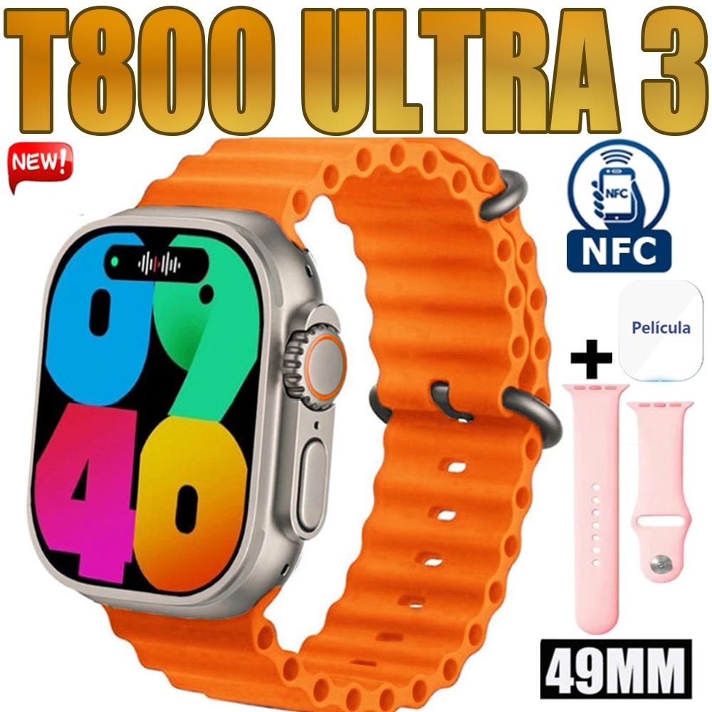 Smartwatch série original T800 Ultra NFC 2.4 Hd 45mm grande tela Inteligente Digital Masculino MT800