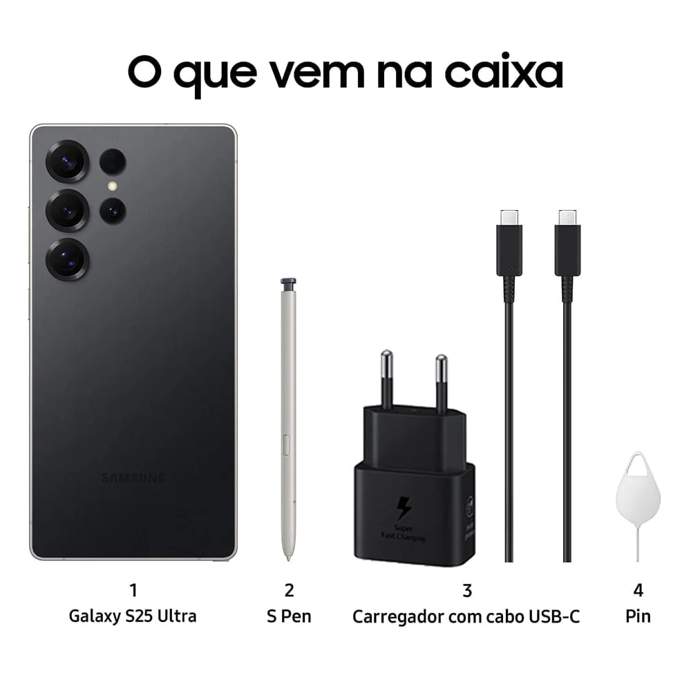 Compatível com carregamento rápido e sem fio, o Galaxy S25 Ultra 5G é o celular perfeito para quem busca tecnologia de ponta e qualidade excepcional.