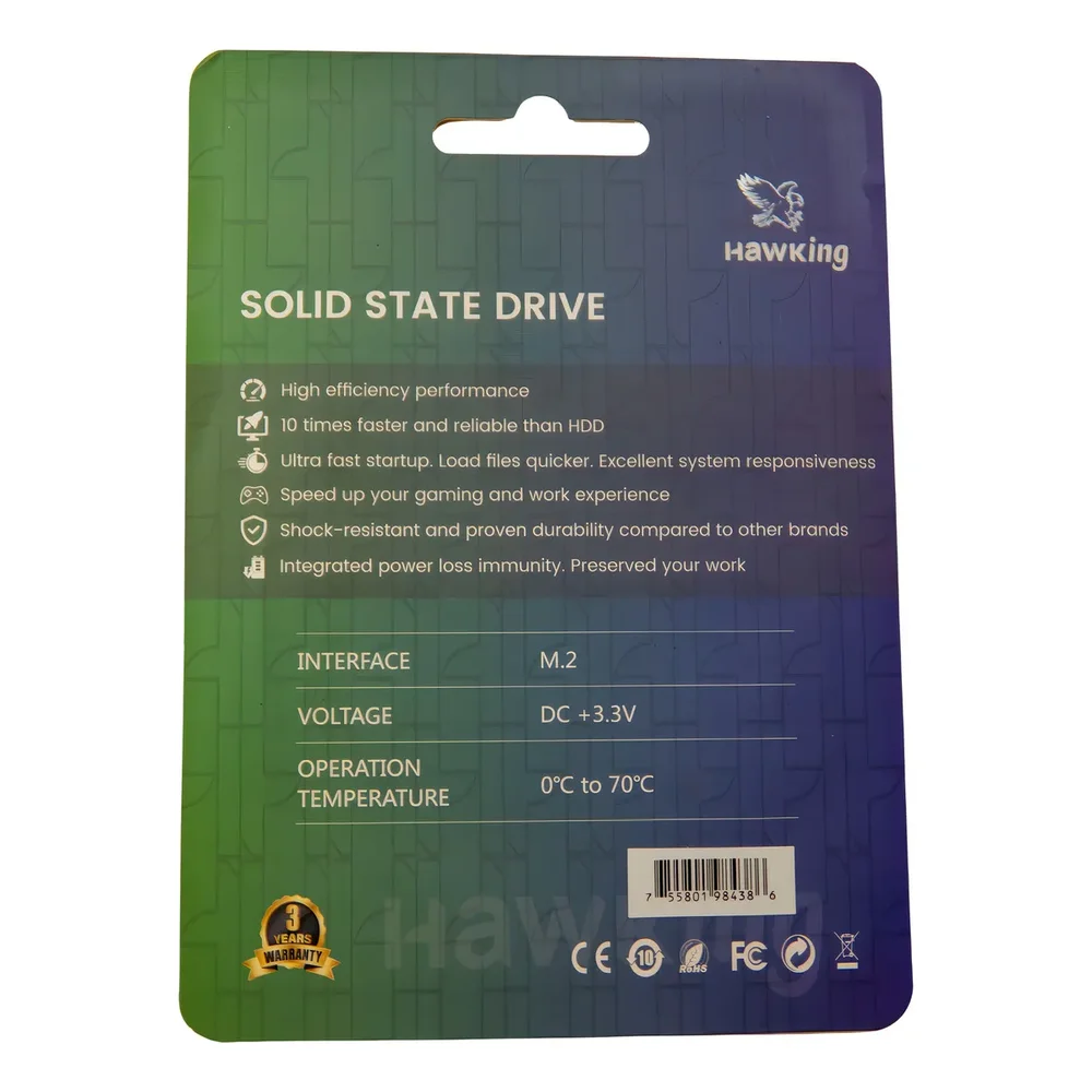 características: marca: hawking modelo: hkpsa-240 o ssd hawking 240gb sata iii é a solução ideal para quem deseja melhorar o desempenho do computador ou notebook com um upgrade simples e eficiente. com formato 2,5 e interface sata iii, ele proporciona inicialização rápida do sistema, abertura ágil de programas e maior fluidez no uso diário, além de baixo consumo de energia e funcionamento silencioso. especificações técnicas: capacidade: 240gb interface: sata iii 6gb/s formato: 2,5 tipo de memória: nand flash velocidade de leitura: até 550 mb/s velocidade de gravação: até 450 mb/s compatibilidade: notebooks e desktops com baia 2,5 sata dimensões: 10 x 7 x 6cm peso: 0,050kg garantia: 12 meses