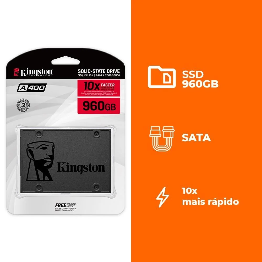 SSD Kingston A400 960GB, 2.5" SATA 3, Leitura 500MB/s E Gravação 450MB/s - Sa400s37/960g