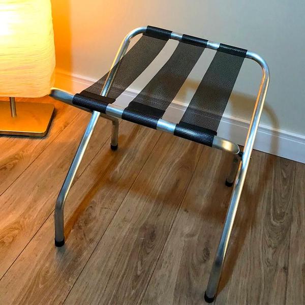 O Suporte de Mala Alumínio ZAKA é dobrável, prático e leve. Com capacidade de 100kg, suporta diversos modelos de malas. Proporciona ambiente mais organizado e mais bonito. Fabricado em alumínio alta resistência e durabilidade de 1 polegada. Ideal para hotéis, pousadas e apartamentos.