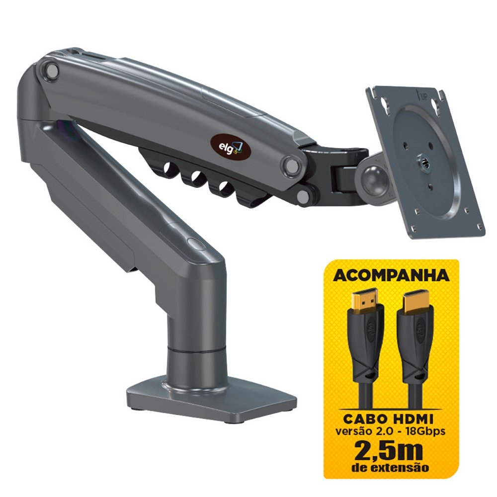 Suporte de Mesa Articulado para Monitor de 17" a 35" ELG, com Pistão a Gás e Cabo HDMI 2.0, VESA, Grafite - F98HDMI