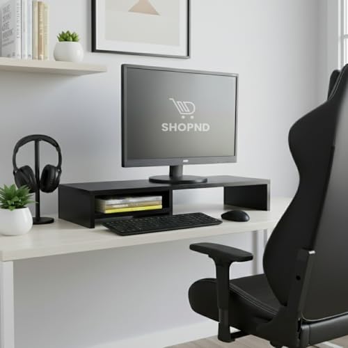 Suporte Para Monitores Elevado Mesa Home Office Setup Gamer Organizador MDF 90cm (Preto)