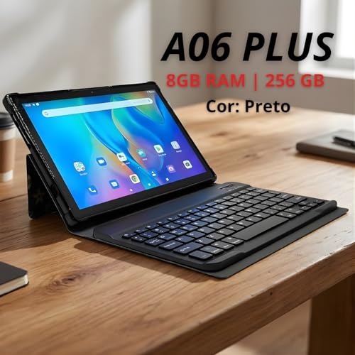 Tablet 10.1" 256GB/ 8GB RAM Bateria 6000mAh, Processador Octa Core, Câmera Traseira 13MP Dual Chip com Capa e Teclado para Trabalho e Estudos (Preto)