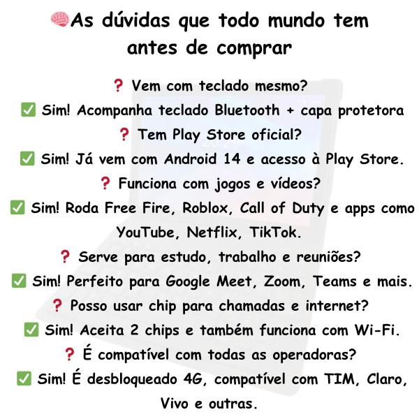 - Acessórios Capa e Teclado Bluetooth InclusosArmazenamento Interno 256GBCapacidade da Bateria 6000mAhCertificado Homologado pela Anatel Número 037192214637Conectividade WiFi | BluetoothConteúdo da Embalagem 1x Tablet A06 Plus, 1x Capa Protetora, 1x Teclado