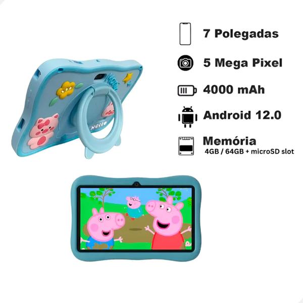A Tablet Kids 7 Polegadas é a escolha ideal para crianças que buscam um mundo de diversão e aprendizado. Com um design atrativo na cor rosa, este dispositivo vem equipado com um sistema operacional Android 12.0 e uma capacidade de armazenamento de 64 GB, proporcionando espaço suficiente para jogos educativos e aplicativos interativos. Com uma tela de 7 polegadas, a tablet oferece uma experiência visual imersiva, perfeita para assistir a vídeos no YouTube e explorar a Play Store de maneira segura e controlada. Sua conectividade é facilitada pelo Wi-Fi e suporte à tecnologia 5G, garantindo acesso rápido à internet e a todas as suas funcionalidades. A tablet conta com 4 GB de memória RAM, permitindo que várias tarefas sejam realizadas simultaneamente sem travamentos. Além disso, possui uma câmera frontal e uma traseira, permitindo que as crianças se conectem e compartilhem momentos especiais com amigos e familiares. Desenvolvida pensando no público infantil, a Tablet Kids inclui uma caneta touch para facilitar a interação. É uma ferramenta excelente que estimula a criatividade e o aprendizado, tornando o uso de tecnologia algo divertido e acessível para os pequenos.