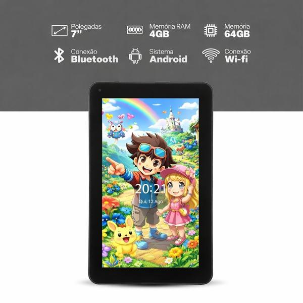 Modelo: Tablet Mirage 7 pol 64GB Android 13 4GB RAM Quad Core Wi-fi