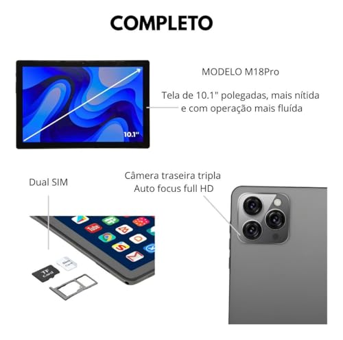 O Tablet PC 10.1” Android 14 é a solução completa para quem busca produtividade, desempenho e versatilidade em um único dispositivo. Ideal para trabalho, estudos, aulas online, reuniões, leitura e entretenimento, ele já vem pronto para uso, com um kit completo de acessórios que transforma o tablet em um verdadeiro computador portátil. Sua tela de 10,1 polegadas, ampla e nítida, proporciona excelente experiência visual para vídeos, leitura de documentos, apresentações e navegação. O sistema Android 14 garante maior fluidez, segurança e compatibilidade com os aplicativos mais atuais da Play Store. Equipado com 8 GB de memória RAM e 128 GB de armazenamento interno, o tablet oferece ótimo desempenho para multitarefas, permitindo alternar entre aplicativos com rapidez e armazenar arquivos, vídeos, fotos e aplicativos sem preocupação. O processador Octa Core assegura resposta rápida, estabilidade e eficiência tanto para uso profissional quanto educacional. A bateria de 8000mAh entrega longa autonomia, ideal para um dia inteiro de trabalho ou estudos sem a necessidade de recargas constantes. Além disso, o modelo conta com Dual Chip, permitindo utilizar dois números simultaneamente — perfeito para quem precisa separar vida pessoal e profissional. O conjunto de câmeras garante versatilidade no dia a dia: a câmera traseira de 13 MP oferece ótima qualidade para fotos, vídeos, digitalização de documentos e chamadas em alta definição, enquanto a câmera frontal é ideal para videoaulas e reuniões online. Pensando em máxima praticidade, o produto acompanha um kit completo de acessórios: Capa com suporte, que protege o tablet e permite uso em modo notebook Teclado Bluetooth, ideal para digitação confortável e produtividade Mouse Bluetooth, oferecendo mais precisão no uso Caneta touch, perfeita para anotações e desenhos Fones de ouvido, para aulas, reuniões e lazer Compatível com Android, Windows e iOS, o teclado Bluetooth se conecta facilmente, tornando o uso simples e intuitivo desde o primeiro momento. Com design moderno, acabamento elegante e alta durabilidade, este tablet é a escolha ideal para quem deseja desempenho, mobilidade e custo-benefício, seja para estudar, trabalhar ou se divertir. Principais Benefícios ✔ Tela grande de 10.1” ✔ Android 14 atualizado ✔ 8 GB RAM + 128 GB de armazenamento ✔ Processador Octa Core ✔ Bateria 8000mAh de longa duração ✔ Câmera traseira 13 MP ✔ Dual Chip ✔ Kit completo: capa, teclado, mouse, caneta e fones ✔ Ideal para trabalho, estudos e uso diário 👉 Um tablet completo, pronto para transformar sua rotina com praticidade e desempenho.