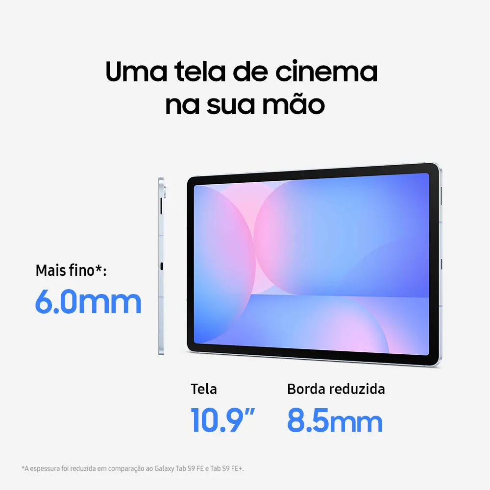 Tablet Samsung Galaxy Tab S10 FE, 128GB, 8GB RAM, Tela Imersiva de 10.9" 90Hz, Camera Traseira de 8MP, Câmera Frontal de 13MP Ultra Wide, Wifi 6, IP68, Android 15 Prepare-se para uma experiência incrível com o novo Galaxy Tab S10 FE e suas funções de Inteligência Artificial! Este dispositivo traz todos os principais atributos da série Galaxy Tab S10 e melhora ainda mais as funções que você ama! Com a S Pen incluída na caixa, você pode liberar todas suas ideias criativas e dar vida às suas inspirações em uma tela imersiva de 10.9", com muita brilho, alta resolução e fluidez de imagens com 90Hz de taxa de atualização. Imagine a alegria de criar e expressar-se de forma tão fácil e divertida! O Galaxy Tab S10 FE é a ferramenta perfeita para você se conectar com o mundo de uma maneira mais colorida e inspiradora. Com o novo processador Exynos 1580, desenvolvido pela Samsung exclusivamente para seus produtos, você terá performance mais que suficiente para todas suas atividades! Seja você um usuário que procura um tablet para consumir conteúdo e se divertir, ou até mesmo para quem deseja desempenho em multitarefas e jogos, este processador é a chave para uma experiência incrível! Imagine poder assistir a seus filmes e séries favoritos sem interrupções, ou jogar seus jogos preferidos com uma velocidade e fluidez impressionante! Viva a experiência de tecnologias de inteligencia artificial com o Circule para Pesquisar, Assistente de Notas, e edição de fotos em velocidade máxima! Imagine ter todos os seus arquivos sempre à mão, com a praticidade e proteção da Smart Book Cover que acompanha o produto. Agora, você pode transportar seu tablet protegido e sem preocupações, e posicioná-lo rapidamente na vertical ou horizontal para a utilização, como preferir! Com uma memória interna de 128GB e 8GB de RAM, o Galaxy Tab S10 FE é a escolha perfeita para organizar suas fotos, anotações, documentos e arquivos para acesso rápido onde estiver. Com seu Galaxy Tab S10 FE, você pode enfrentar qualquer desafio. A certificação IP68 garante que seu tablet e a S Pen são resistentes à água e a pequenas partículas, o que significa que você pode usá-los em praticamente qualquer lugar, sem se preocupar com o tempo ou interpéries. Imagine poder trabalhar ou se divertir ao ar livre, mesmo em dias de chuva ou em ambientes com muita poeira. É a liberdade de aproveitar a vida ao máximo, sem limites. Os produtos da série Galaxy S10 FE renovam o icônico design Samsung, mas também se preocupa com o nosso planeta através de ações de sustentabilidade. Imagine uma câmera flutuante e um acabamento marcante e premium que fazem seu coração bater mais rápido! E o melhor de tudo? Cada parte deste dispositivo é feita com amor ao meio ambiente. Plásticos recuperados do oceano, metais que seriam descartados na natureza e embalagens 100% de papel certificado FSC garantem que você está contribuindo para a sustentabilidade. Com o Tab S10 FE, você não apenas adquire um produto confiável e robusto, mas também se sente orgulhoso de fazer a diferença. Que emoção poder explorar o universo Galaxy com apps incríveis que vão te levar além dos seus sonhos! Imagine criar seu caderno digital com o Good Notes, desenvolver suas habilidades de desenho com o ClipStudio Paint, se sentir um verdadeiro artista com o PenUp ou então criar projetos arquitetônicos que ultrapassam a imaginação com o ArcSite. É uma experiência mágica que vai te fazer sorrir e se sentir realizado a cada criação. Descubra um mundo de possibilidades através da Galaxy Store. Seja para reuniões de trabalho ou para rever familiares sempre que quiser, as videoconferências se tornaram uma referência prática para essas atividades. Com o Galaxy Tab S10 FE você estará sempre em foco com sua câmera de 12MP ultra angular, e se expressa claramente através de som limpo e cristalino. Aproveite as incríveis facilidades do Ecossistema Samsung e da One UI 7! É como se a tecnologia tivesse se tornado uma extensão de você, facilitando suas tarefas cotidianas com uma simplicidade que parece mágica. Viva essa experiência incrível e descubra como a tecnologia pode tornar seu dia a dia ainda mais feliz e prático com as funções de Inteligência Artificial.